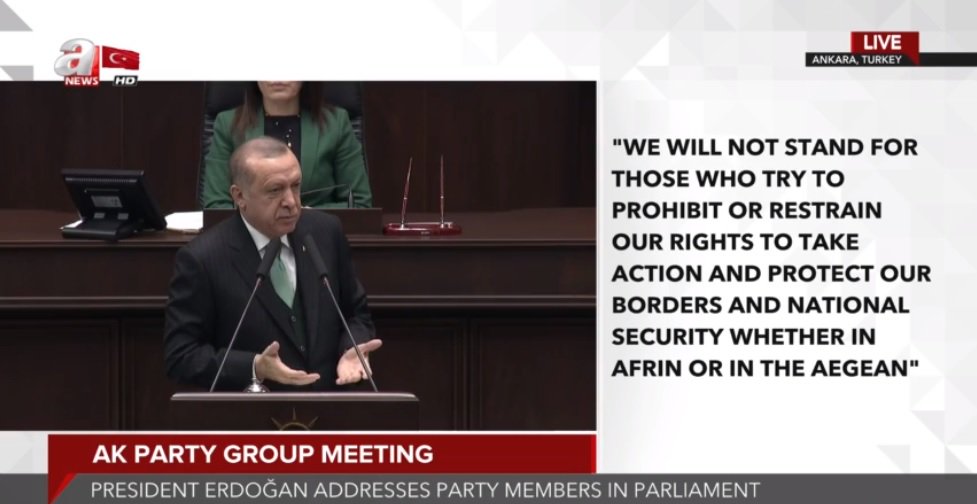 #Turkey president #Erdogan warns #Greece & #Cyprus over what he calls miscalculated opportunistic moves in Aegean disputes and off-shore drilling, says his country is capable of disrupting their game plans while conduction military offensive in #Afrin, Syria pic.twitter.com/4qKguKUji6