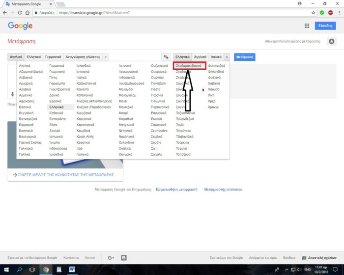 Όποιος χρησιμοποιήσει την μετάφραση της Google (Google Translate) , αν πατήσει το βελάκι που βρίσκεται δίπλα από το κουτάκι μετάφραση, θα δει μπροστά του πάρα πολλές γλώσσες. Μια από αυτές τις γλώσσες είναι η….Σλαβομακεδονική η οποία σύντομα θα γίνει σκέτο Μακεδονική (αν βρεθεί «λύση»).